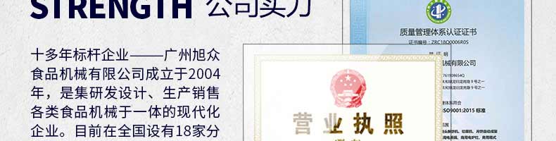 廣州旭眾食品機械有限公司是一家集科研開發,生產設計,營銷服務為一體的現代化生產企業?,F代化生產車間,精湛制造技術,所產機械歷經市場重重考驗,不斷贏得海內外客戶的贊譽。