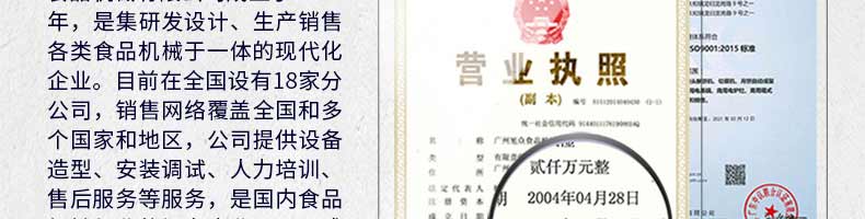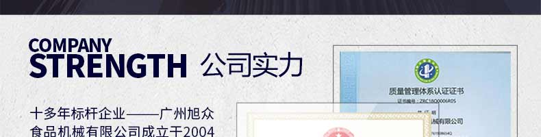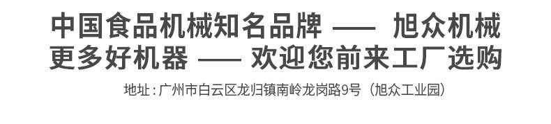 廣州旭眾食品機械有限公司是一家集科研開發,生產設計,營銷服務為一體的現代化生產企業?,F代化生產車間,精湛制造技術,所產機械歷經市場重重考驗,不斷贏得海內外客戶的贊譽。