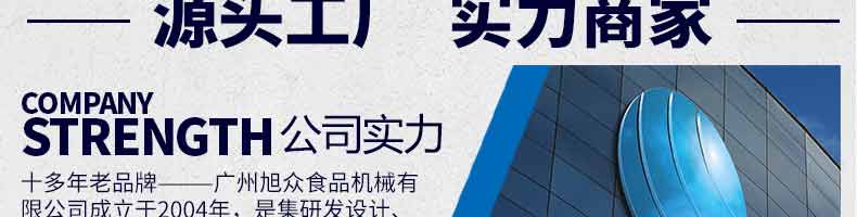 廣州旭眾食品機械有限公司是一家集科研開發,生產設計,營銷服務為一體的現代化生產企業。現代化生產車間,精湛制造技術,所產機械歷經市場重重考驗,不斷贏得海內外客戶的贊譽。