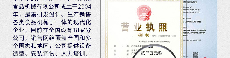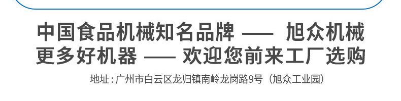 廣州旭眾食品機械有限公司是一家集科研開發(fā),生產(chǎn)設(shè)計,營銷服務(wù)為一體的現(xiàn)代化生產(chǎn)企業(yè)?,F(xiàn)代化生產(chǎn)車間,精湛制造技術(shù),所產(chǎn)機械歷經(jīng)市場重重考驗,不斷贏得海內(nèi)外客戶的贊譽。