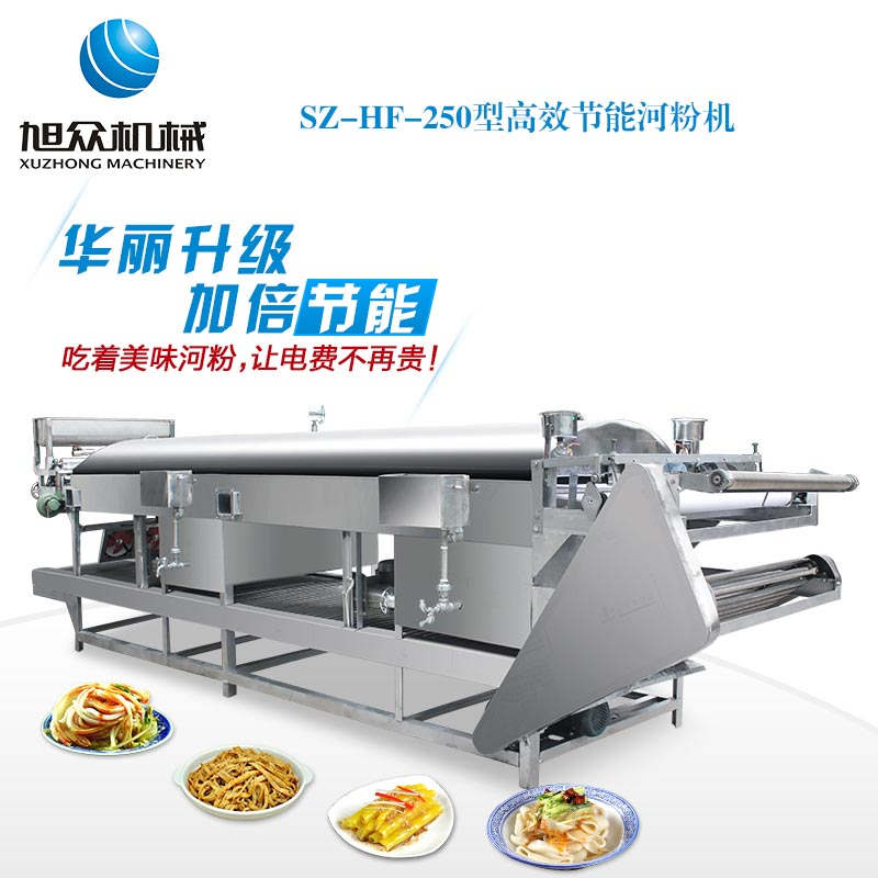 SZ-HF-250高效節能河粉機,采用直熱式加溫,升溫快、油耗低,比普通河粉機節能40%以上