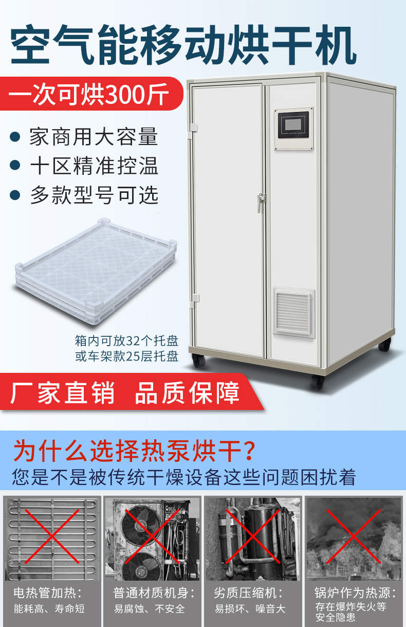 烘干抽濕一體機(帶烘房),空氣能移動烘干機,一次可烘300斤、家商用大容量、十區精準控溫、多款型號可選。智能烘干時代出類拔萃的新體驗
