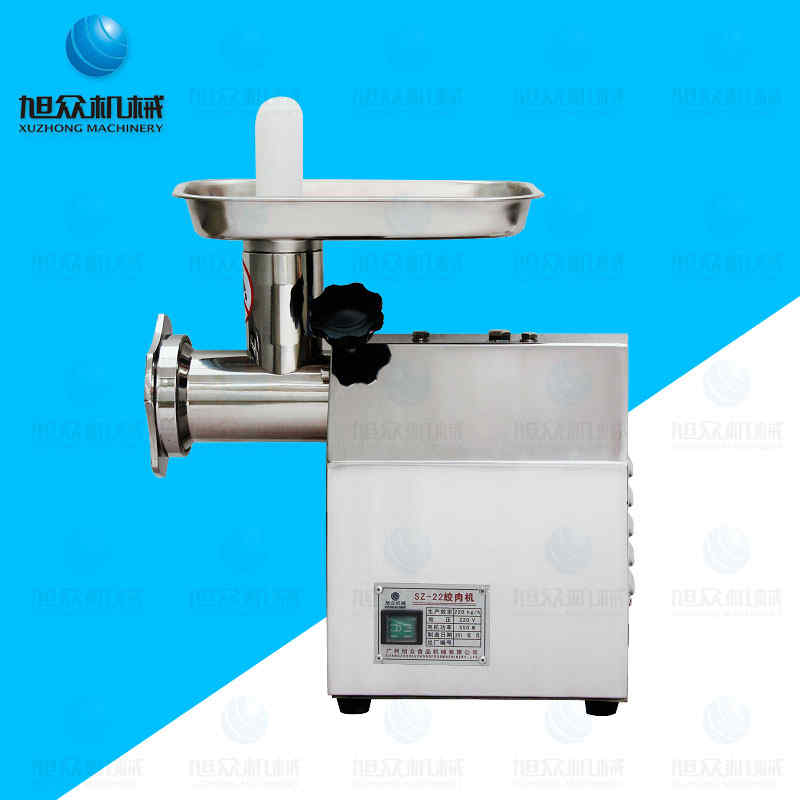 SZ-22 電動絞肉機,電動絞肉機的校孔直徑為6、8mm,本機優(yōu)點具有電耐用、方便快捷、結(jié)構(gòu)緊湊、外形美觀、操作方便、效率高、耗電少、清潔保養(yǎng)容易、安全衛(wèi)生等優(yōu)點。采用全封閉齒輪傳動,結(jié)構(gòu)緊湊,運轉(zhuǎn)平穩(wěn),工作可靠,且維修方便;絞肉機頭及接觸食品的零部件都采用不銹鋼制造,安全無污染;機殼線條流暢,沒有可污的縫隙及無傷害操作者的銳邊,易于清潔。