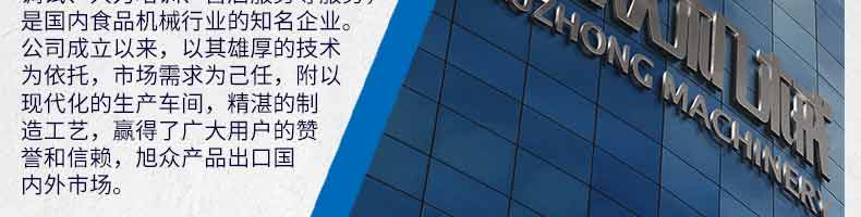 廣州旭眾食品機械有限公司是一家集科研開發,生產設計,營銷服務為一體的現代化生產企業。現代化生產車間,精湛制造技術,所產機械歷經市場重重考驗,不斷贏得海內外客戶的贊譽。