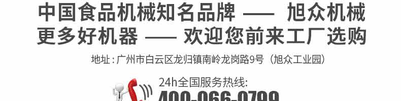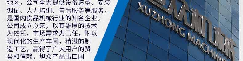 廣州旭眾食品機(jī)械有限公司是一家集科研開發(fā),生產(chǎn)設(shè)計(jì),營銷服務(wù)為一體的現(xiàn)代化生產(chǎn)企業(yè)。現(xiàn)代化生產(chǎn)車間,精湛制造技術(shù),所產(chǎn)機(jī)械歷經(jīng)市場重重考驗(yàn),不斷贏得海內(nèi)外客戶的贊譽(yù)。