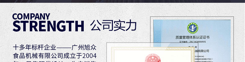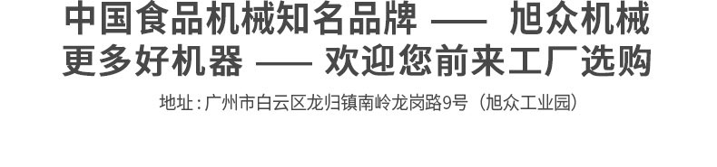 廣州旭眾食品機(jī)械有限公司是一家集科研開發(fā),生產(chǎn)設(shè)計(jì),營銷服務(wù)為一體的現(xiàn)代化生產(chǎn)企業(yè)。現(xiàn)代化生產(chǎn)車間,精湛制造技術(shù),所產(chǎn)機(jī)械歷經(jīng)市場重重考驗(yàn),不斷贏得海內(nèi)外客戶的贊譽(yù)。