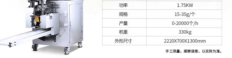 名稱801II餃子皮機 電源220V 功率250W 產量各款有不同,聯系銷售員 尺寸650X380X750mm 重量各款有不同,聯系銷售員 規格餃子皮直徑:85-120mm餃子皮厚度:0.8-3mm 其他
