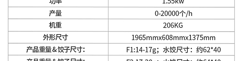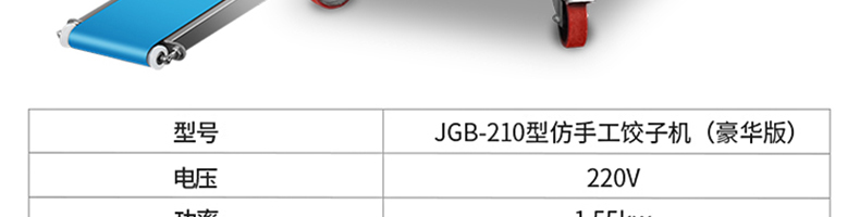 210豪華餃子機,實力強勁、超高效率一小時可做大約20000個餃子!可生產速凍餃子、各種肉餡、肉菜混合餡、全菜餡以及其他種餡的餃子。