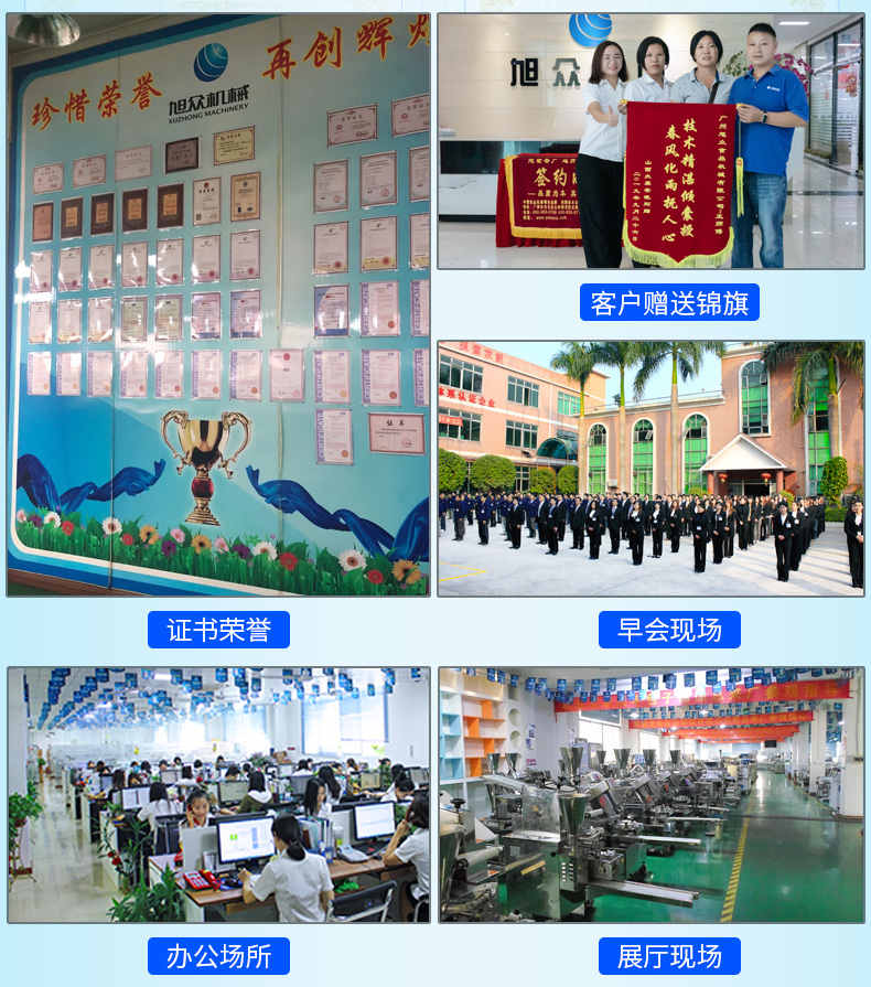 廣州旭眾食品機械有限公司是一家集科研開發,生產設計,營銷服務為一體的現代化生產企業。現代化生產車間,精湛制造技術,所產機械歷經市場重重考驗,不斷贏得海內外客戶的贊譽。