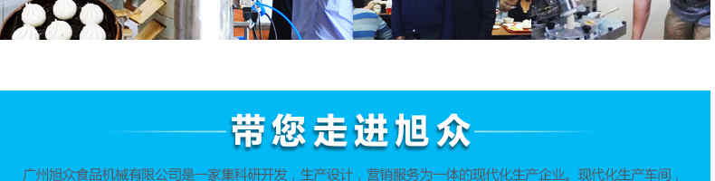 廣州旭眾食品機械有限公司是一家集科研開發,生產設計,營銷服務為一體的現代化生產企業?,F代化生產車間,精湛制造技術,所產機械歷經市場重重考驗,不斷贏得海內外客戶的贊譽。