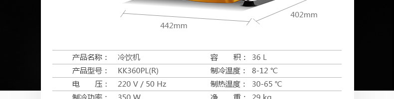 名稱PL-234A/234TM冷飲機系列 電源220/220V 功率0.32/0.35 kw 產量36/36L 尺寸485*470*740/485*470*740mm 重量30/30kg 規格 其他