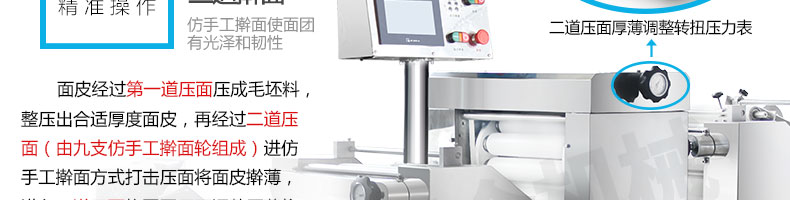 名稱ZH-280型仿人工卷面式包子機(jī)饅頭機(jī) 電源220/380V(見(jiàn)機(jī)器名牌) 功率3kw 產(chǎn)量包子0-3600個(gè)/小時(shí),饅頭2000-7200個(gè)/小時(shí) 尺寸主機(jī)尺寸4100*725*1520mm,成型機(jī)尺寸1490*870*830mm,出餡機(jī)尺寸870*4 重量450+110+170kg 規(guī)格包子25-150克/個(gè),饅頭10-200克/個(gè) 其他三段壓面