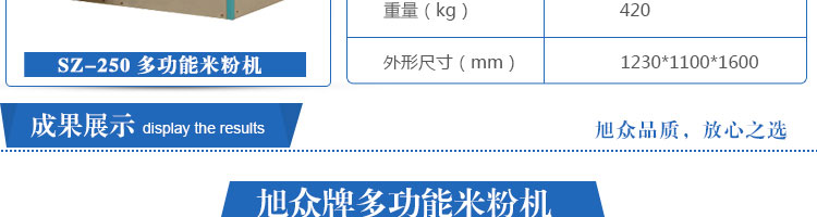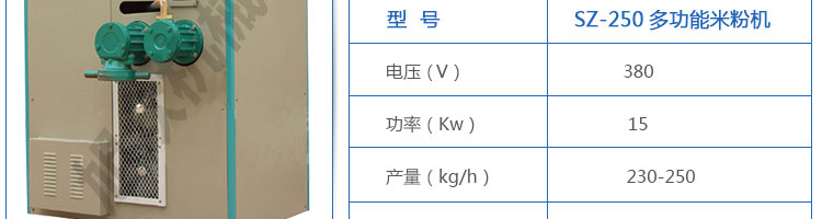 名稱SZ-250多功能米粉機 電源380V 功率15kw 產量230-250kg/h 尺寸1230*1100*1600mm 重量420kg 規格 其他