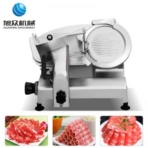 臺(tái)式半自動(dòng)切片機(jī),適合切無(wú)骨肉類(lèi)和其他類(lèi)似榨菜帶有彈性的食物,把原材料肉切成肉片,并可自動(dòng)成卷狀。可切牛肉片、羊肉片等