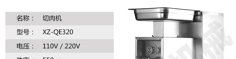 名稱XZ-QE切肉機 電源 功率 產量 尺寸 重量 規格 其他