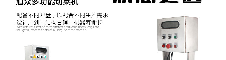 XZ-681多功能切菜機,本設備可切葉菜可切片、絲、段等,葉菜類,切割尺寸: 1 - 60mm 可以調整,適用客戶群:食品廠,凈菜加工;學生營養餐,餐飲連鎖,中央廚房,企業食堂等。