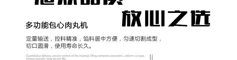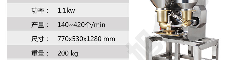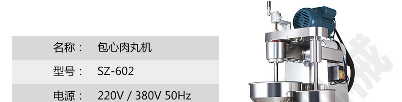 名稱SZ-602包心肉丸機 電源220/380V(見機器銘牌) 功率1.1kw 產量140-420個/分鐘 尺寸770*530*1280mm 重量200kg 規格 其他