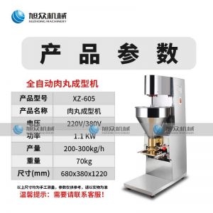 名稱605肉丸成型機主圖 電源220/380v 功率1.1kw 產量200-300kg/h 尺寸680*380*1220mm 重量70kg 規格 其他