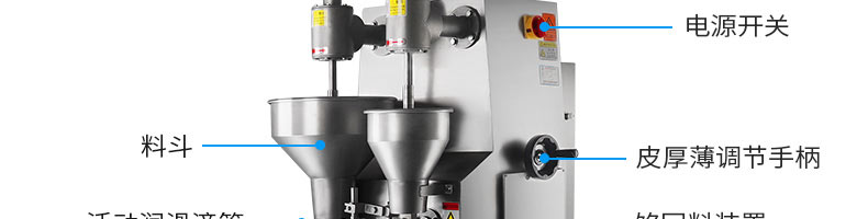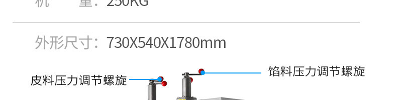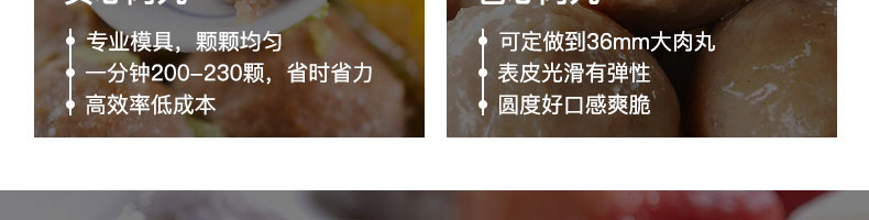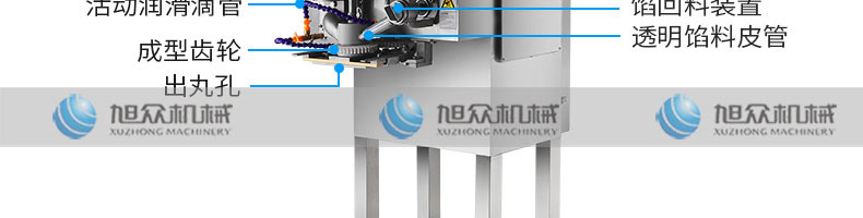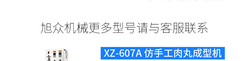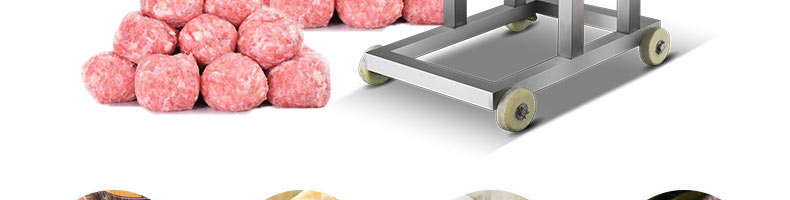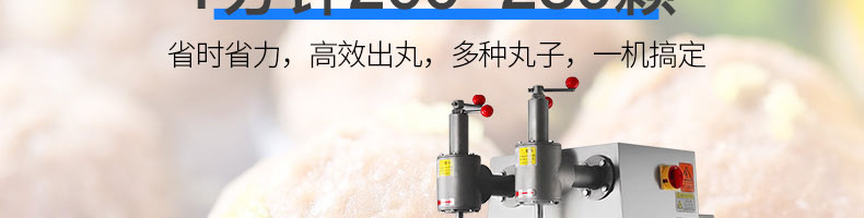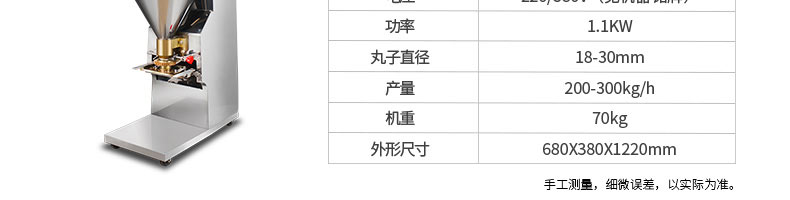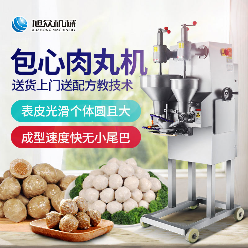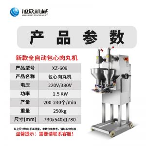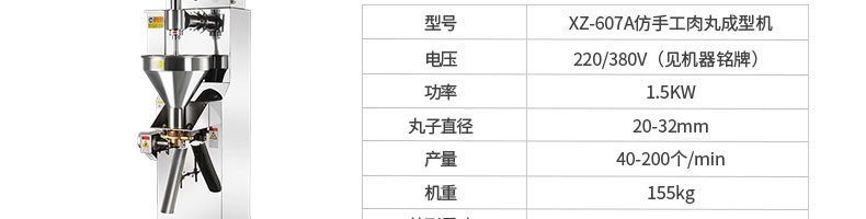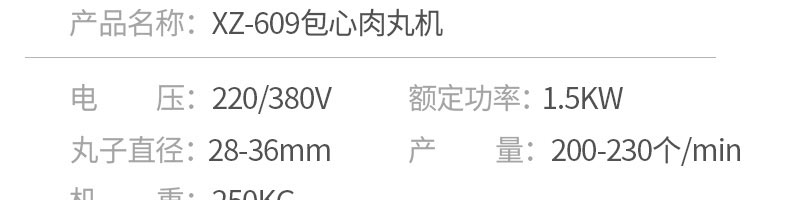 名稱XZ-609包餡肉丸機 電源220/380v 功率1.5kw 產量200-300個/min 尺寸730*540*1780mm 重量250kg 規格丸子直徑:28-36mm 其他