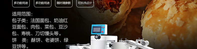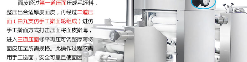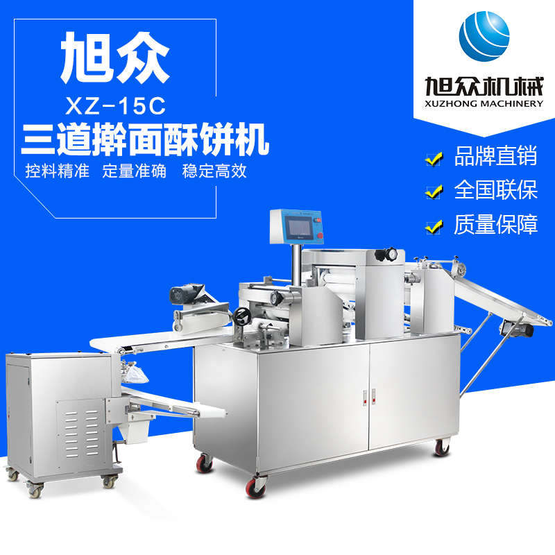 xz-15c三道搟面酥餅機,仿手工制作面食產品的機型,占地面積小,重量輕,運用搟面杖壓面和打擊面團,以保證高面筋性和面帶的密度,并綜合考慮面食的口感而研發??缮a東北糖酥餅,東北大香酥餅,蘇式月餅,芝麻餅,鮮花餅,老婆餅。購機免費提供工藝技術