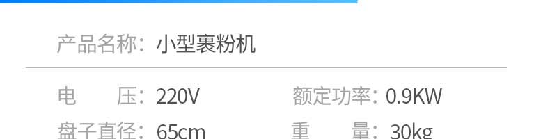 名稱小型裹粉機 電源220V 功率0.9KW 產量 尺寸450*450*470mm 重量30kg 規格 其他