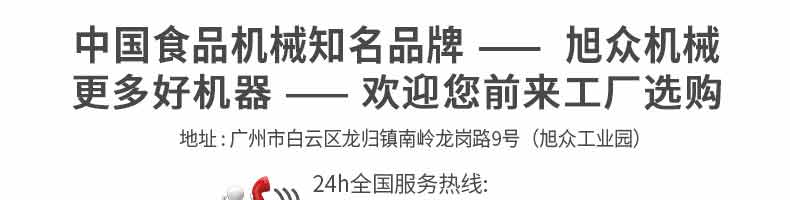 廣州旭眾食品機械有限公司是一家集科研開發,生產設計,營銷服務為一體的現代化生產企業?,F代化生產車間,精湛制造技術,所產機械歷經市場重重考驗,不斷贏得海內外客戶的贊譽。
