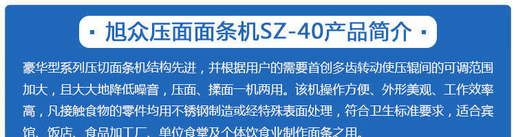 SZ-50、SZ-70壓面面條機系列,本機壓面、揉面一機兩用,用于制作面條、云吞皮、糕點、面點等食品,生產的產品韌性大、耐煮、不易斷,適合于賓館、飯店、食堂、面包廠及各類面點加工單位或個體商戶使用。