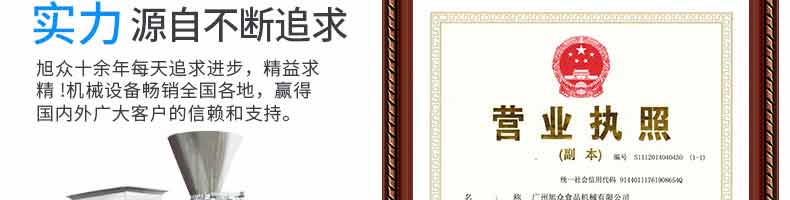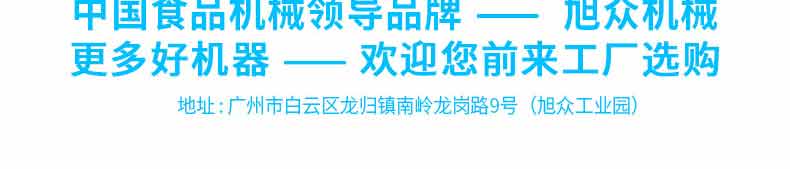 廣州旭眾食品機械有限公司是一家集科研開發,生產設計,營銷服務為一體的現代化生產企業?,F代化生產車間,精湛制造技術,所產機械歷經市場重重考驗,不斷贏得海內外客戶的贊譽。