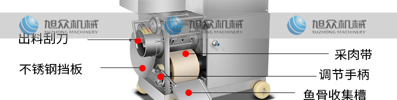 XZC-160型魚肉采肉機,去刺干凈、高效出肉。加工魚肉去刺、蟹蝦去殼等。手工去魚刺太累了,傳統的魚糜加工中,手工去魚皮魚刺,既費時又費力不小心就會傷到手。