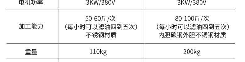 名稱離心濾油機 電源 功率3kw/380V 產量50-60斤/次,80-100斤/次 尺寸800×800×900mm、900×700×1000mm 重量110KG、200KG 規格 其他